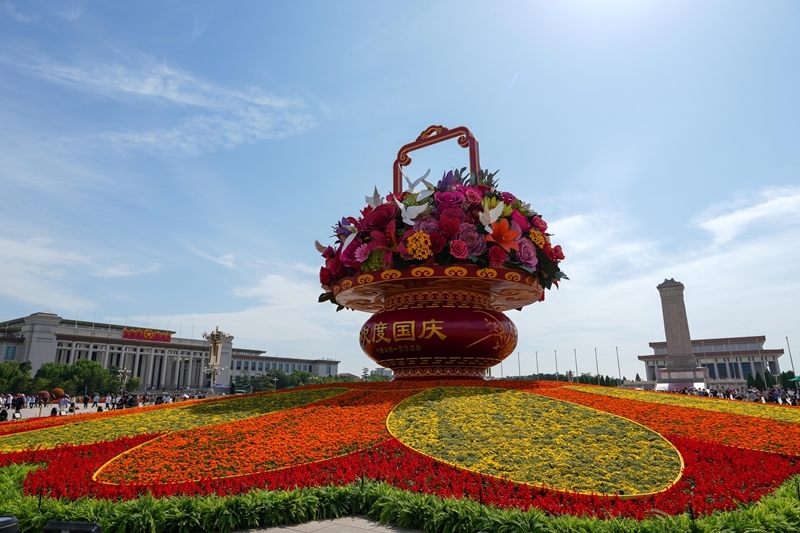 9月25日在天安门广场拍摄的“祝福祖国”大花篮。