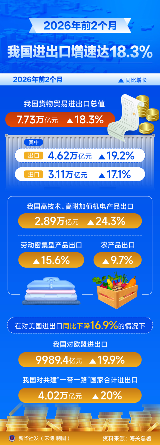 图表:2026年前2个月我国进出口增速达18.3%